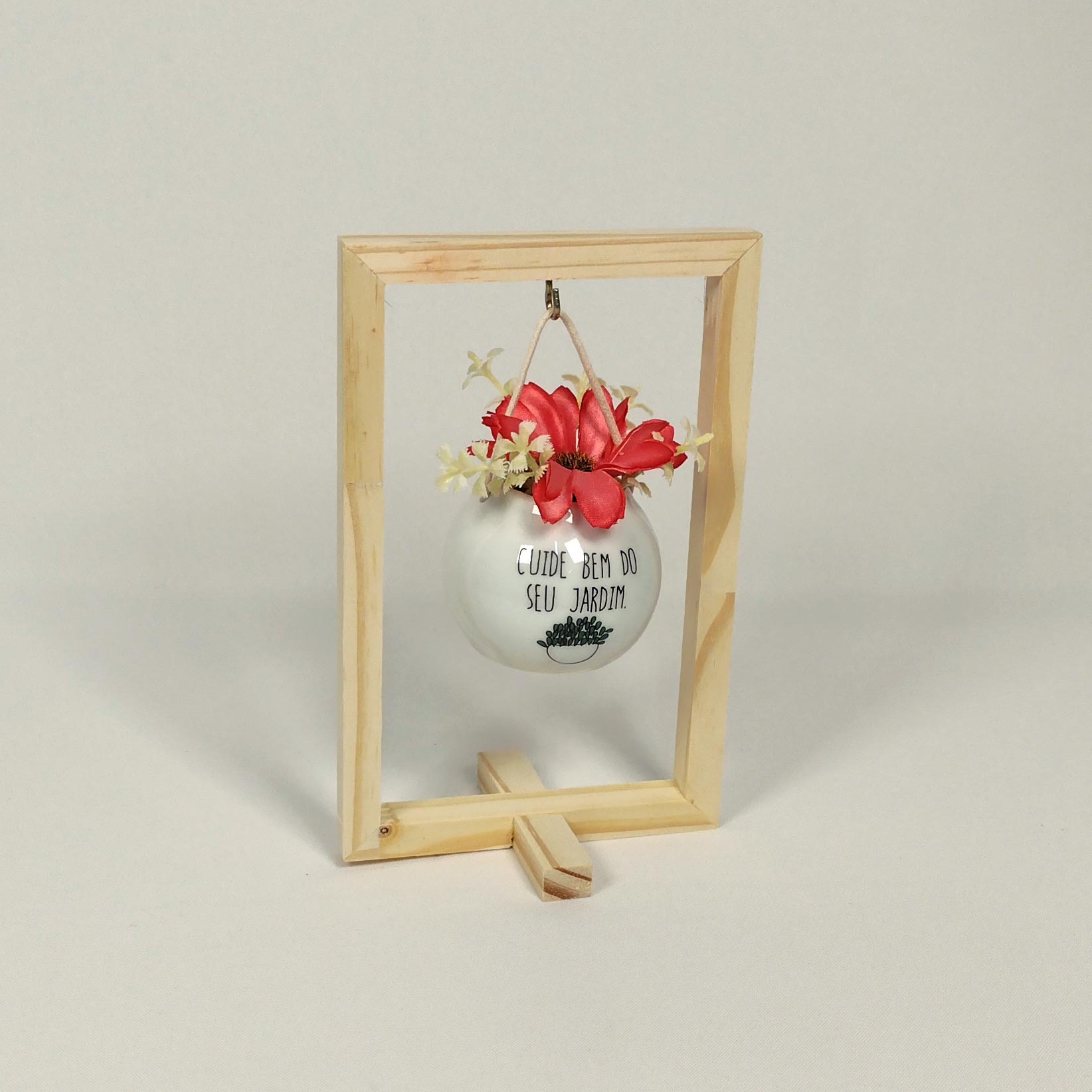 Composição/Material: Moldura em MDF (madeira de reflorestamento certificada), vasinho em porcelana